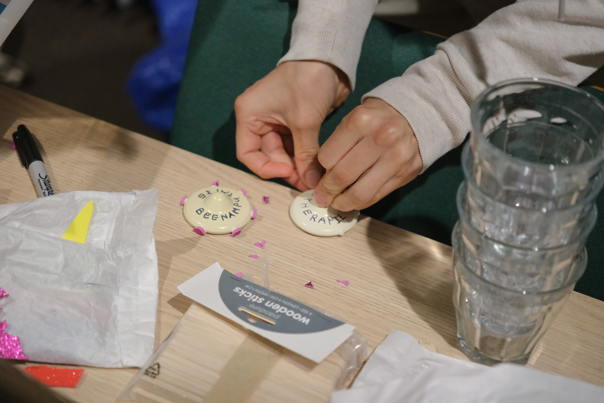 In de tweede ronde werden toekomstbeelden door te knutselen en te tekenen tot leven gewekt. We maakten samen voorwerpen (denk aan dingen, diensten en structuren) die je in 2068 terug kan vinden in het (nu nog fictieve) museum van de zorg.